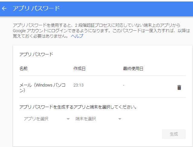 オプションで、「メールをGmailのゴミ箱に移動」を選択